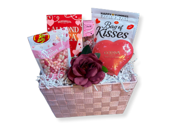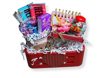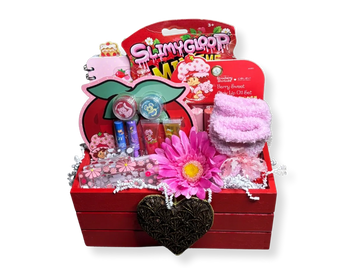 A fun and colorful gift basket made just for kids, filled with favorite candies, playful treats, and cheerful heart-themed surprises. Bright, sweet, and full of smiles, this basket is perfect for sharing love, kindness, and a little extra fun during the season of hearts.