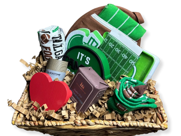 A fun, football-inspired gift basket with a playful romantic twist, featuring sporty décor, cozy game-day accessories, men’s grooming essentials, and thoughtful keepsake accents. Perfect for the guy who loves football, comfort, and a little extra love, this basket is a winning pick for gifting during the season of hearts—without being over the top.